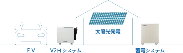 V2Hと合わせて使用することで、太陽光発電で余った電気を蓄電システムだけではなく、EV(電気自動車)にも蓄えることができます。