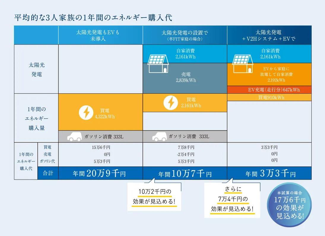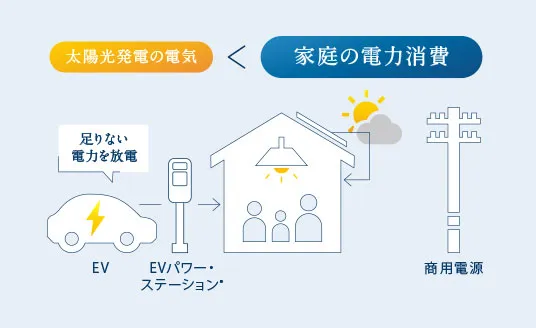 太陽光発電は家庭で使用し、足りない電気はEVから放電。