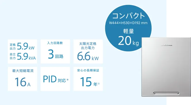 自立出力も6kVAとパワフルで、200VのエアコンやIH調理器も使用できます。